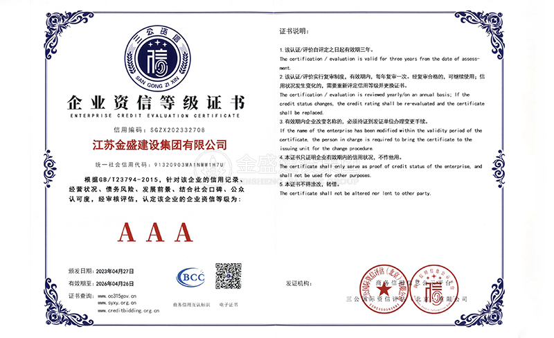 • 3A級資信等級證書
